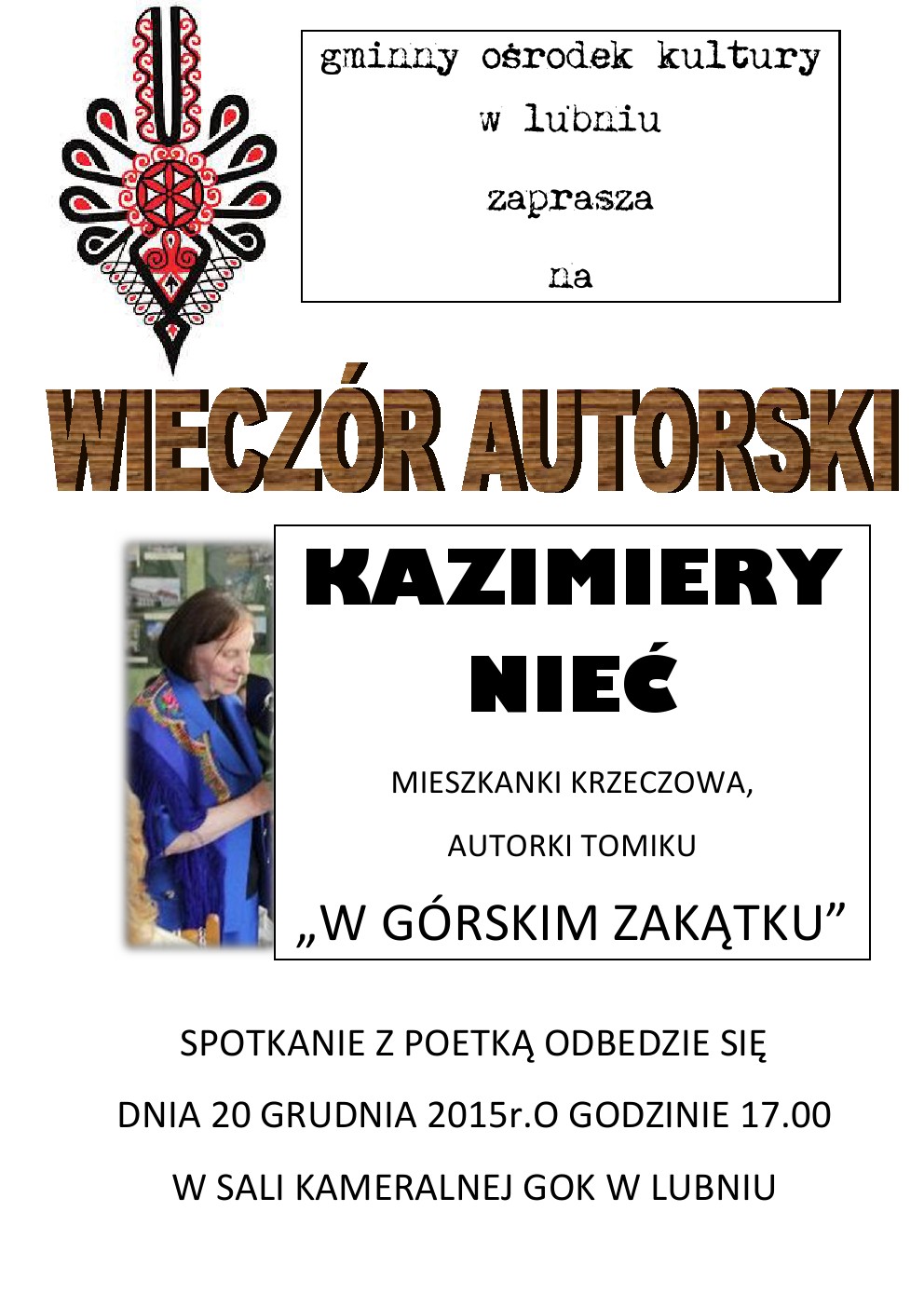 Niebawem zaprosimy Państwa na wieczór autorski z p. Kazimierą Nieć.
