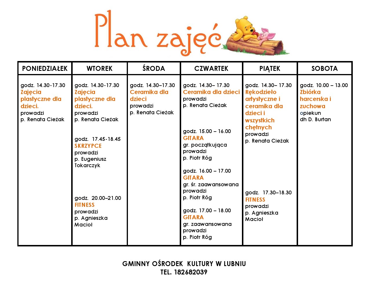 Zajęcia odbywać się będą w Gminnym Ośrodku Kultury w Lubniu